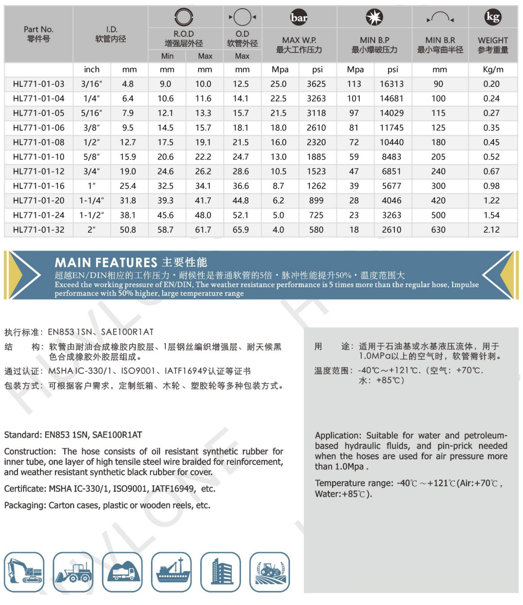 符合/超越EN8531SN/SAE_100R1AT一層鋼絲編織橡膠軟管