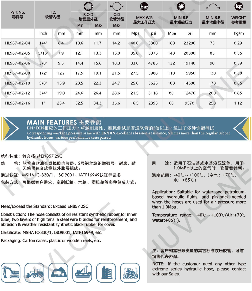 符合/超越DIN EN857二層鋼絲編織耐磨橡膠軟管