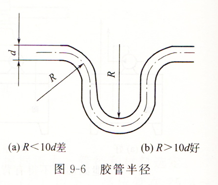圖9-7(b)軟管的最小彎曲半徑必須大于軟管允許的最小半徑,使之處于自然狀態(tài),以避免降低軟管的使用壽命。