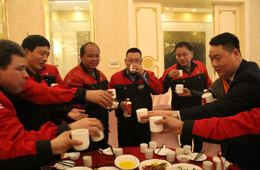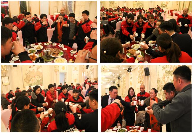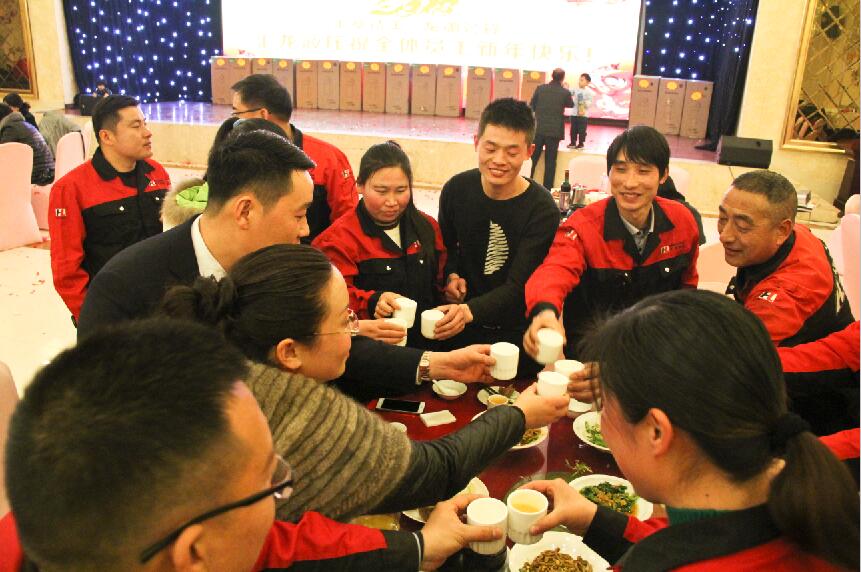 席間,董事長(zhǎng)帶領(lǐng)著部門領(lǐng)導(dǎo)來(lái)到餐桌前對(duì)全體員工表達(dá)感謝和祝福。