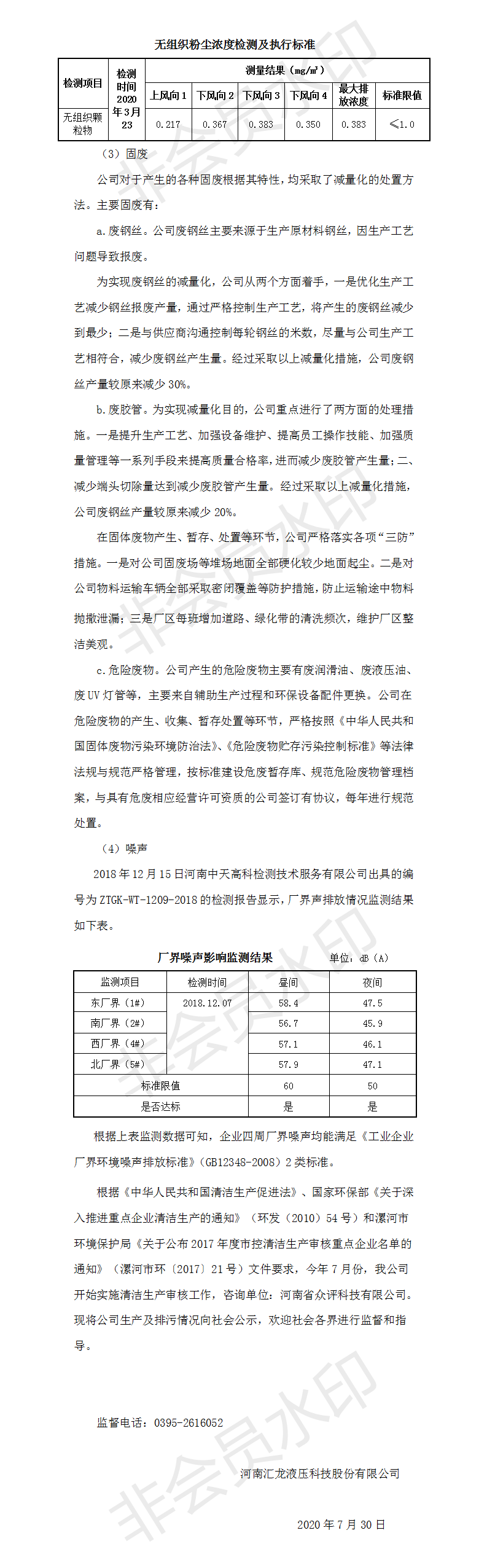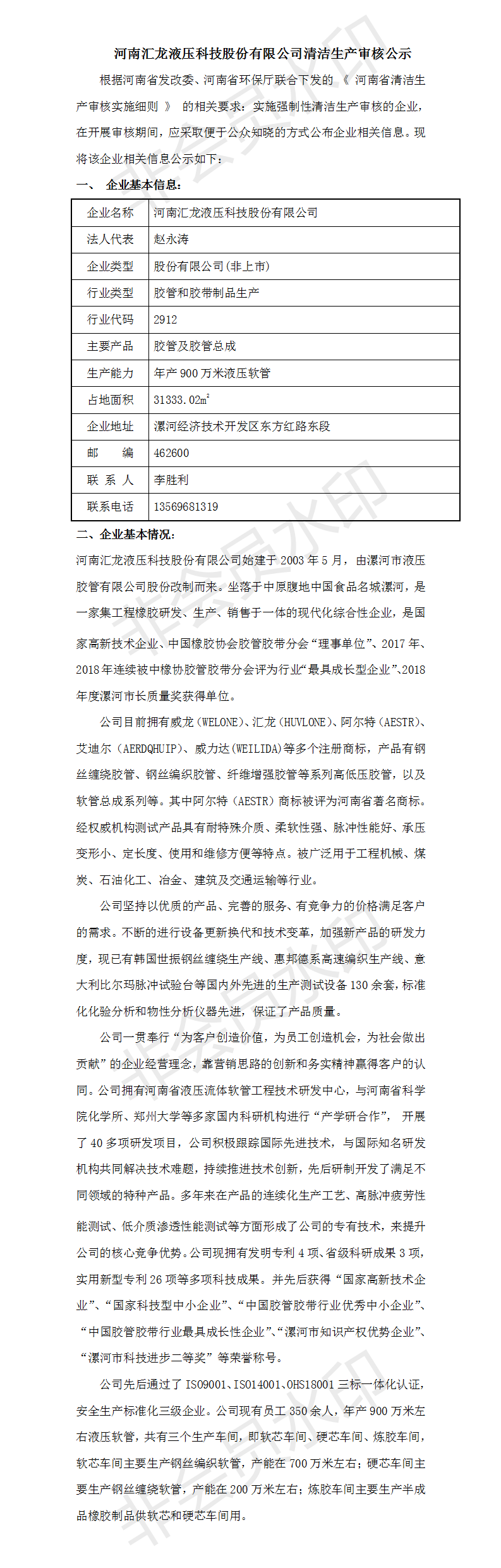 河南匯龍液壓科技股份有限公司清潔生產(chǎn)審核公示